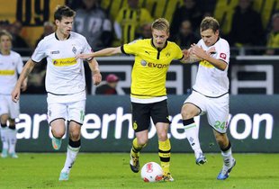 Borussia Dortmund demolished the other Borussia from Moenchengladbach with 5-0. Former Gladbach player Marco Reus (35th/70th minute) was the man of the match scoring the 1-0 and the 3-0 for his new team.