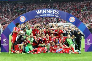 The FC Bayern Munich won the UEFA Champions League 2012/2013. The Final at Wembley with the two top German teams Bayern and Borussia Dortmund going head to head saw a strong BVB dominating the first 20 to 30 minutes of the match with a strong and very offensive style of play. The failed to benefit from their dominance however and Bayern more and more got a grip on the game with Arjen Robben having several good opportunities that were all saved by a strong Roman Weidenfeller in Dortmund´s goal.