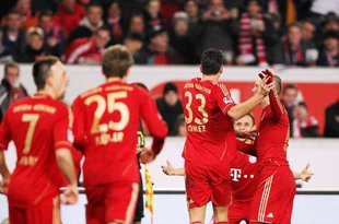 After a close 2-1-win against only ten Stuttgart players FC Bayern Munich is going to be number one in Bundesliga for the winter. Dortmund only ended up chopping the points against 1. FC Kaiserslautern and is three points behind Munich with the much worse goal difference.