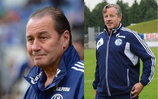 Huub Stevens (left) coached Schalke almost the full lenght of the first leg, Jens Keller was in charge for the rest of the season.